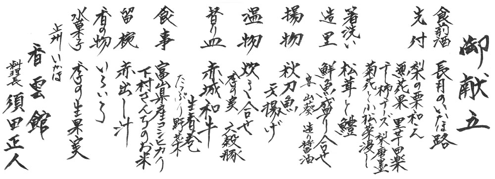 食前酒 長月のいかほ路